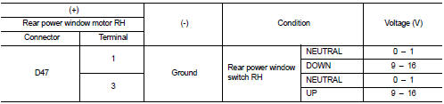 4. Check voltage between rear power window motor RH harness connector and ground.