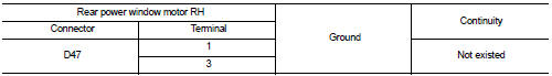 4. Check continuity between rear power window motor RH harness connector and ground.