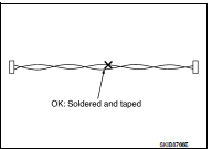 • Solder the repair part, and wrap it with tape. [Twisted wire fray must be 110 mm (4.33 in) or less.]