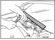 When performing the procedure after removing cowl top cover, cover the lower end of windshield with urethane, etc.