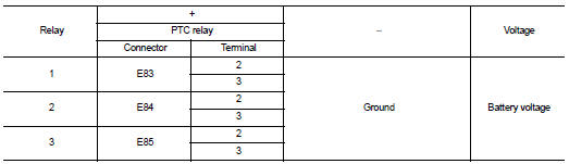 Check continuity between PTC relay harness connector and PTC heater harness connector.