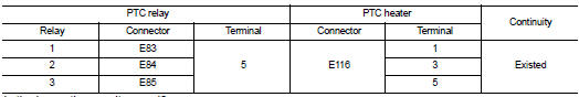 Check PTC heater. Refer to HAC-178, "Component Inspection (PTC Heater)".