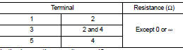 2. Check continuity between PTC relay terminals 3 and 5 when the voltage is supplied between terminals 1 and 2.
