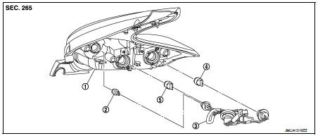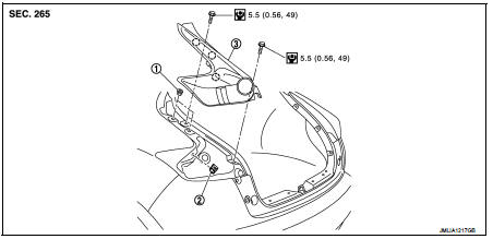 1. Remove rear combination lamp assembly. Refer to EXL-100, "Removal and Installation".