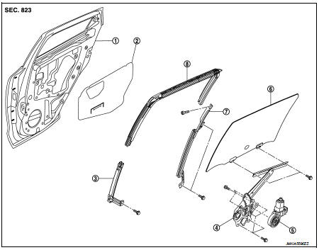 Avoid contact between lower sash (rear) and rear door glass when removing.
