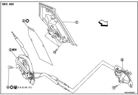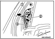 1. Remove rear door finisher. Refer to INT-16, "Removal and Installation".