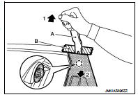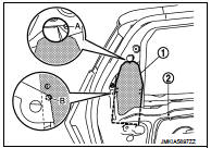 • Align hole of rear door sealing screen to edge (B) of door panel as shown in the figure.