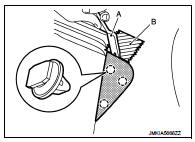 Disengage rear fender cover fixing clips using remover tool (A), and then remove rear fender cover.
