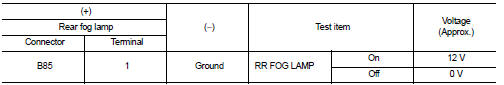 5. With operating the test items, check voltage between rear fog lamp harness connector and ground.