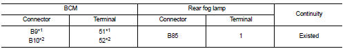 3. Check continuity between BCM harness connector and rear fog lamp harness connector.
