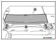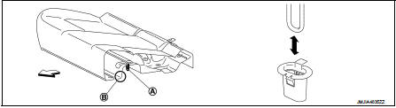 1. Lift up seat cushion at a close position (B) of engaging portion (A) and disengage seat cushion hook.