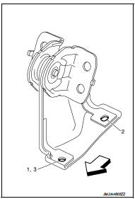 2. Remove side hinge mounting bolt, and then remove side hinge from luggage side lower finisher.