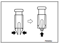 5. Use pincers, etc., to press up pawls as shown by the arrows in the figure, and remove headrest holder from seatback.