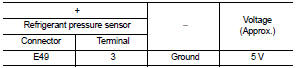 4. Check the voltage between refrigerant pressure sensor harness connector and ground.