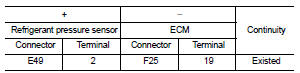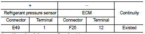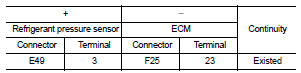 1. Check the continuity between ECM harness connector and refrigerant pressure sensor harness connector.