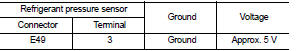 3. Check the voltage between refrigerant pressure sensor harness connector and ground.