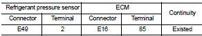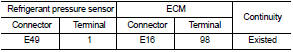 1. Check the continuity between ECM harness connector and refrigerant pressure sensor harness connector.