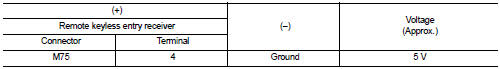 2. Check voltage between remote keyless entry receiver harness connector and ground.
