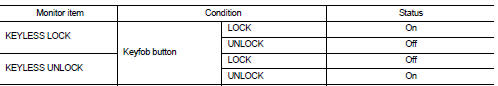 2. Select “KEYLESS ” or “KEYLESS UNLOCK” in “DATA MONITOR” mode.
