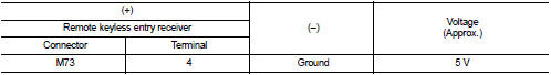 2. Check voltage between remote keyless entry receiver harness connector and ground.