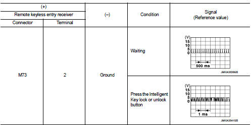 2. Check signal between remote keyless entry receiver harness connector and ground using oscilloscope.