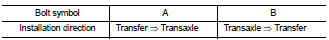 • When installing the transfer to the transaxle, install the mounting bolts following the standard below.