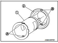 2. Pull out inner socket (1) by pushing the pawl (B) of the ring (2) from the inner socket hole (square) (A).