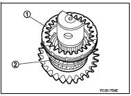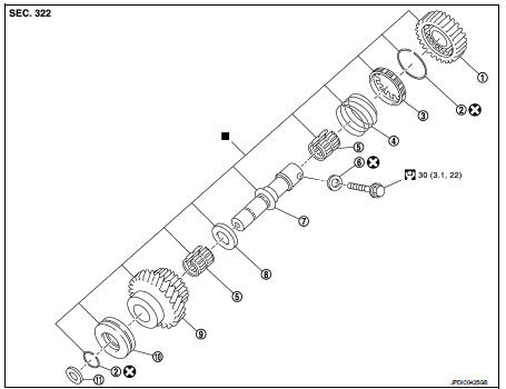 • Replace reverse output gear, snap ring, reverse baulk ring, return spring, needle bearing, reverse idler shaft, spacer, reverse input gear, and lock washer as a set.