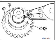 4. Remove snap ring (1), lock washer (2), and reverse input gear (3).