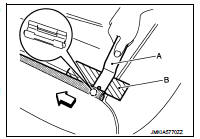 1. Disengage roof side molding rear side fixing clip, using a remover tool (A).