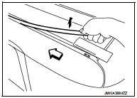 3. Disengage windshield molding and clip at the front end of roof side molding, and then remove while pulling out toward vehicle rear