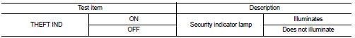 1. Perform “THEFT IND” in “ACTIVE TEST” mode of “IMMU” of “BCM” using CONSULT-III.