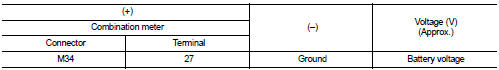 3. Check voltage between combination meter harness connector and ground.