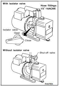 • Vacuum pumps usually have a manual isolator valve as part of the pump. Close this valve to isolate the service hose from the pump.