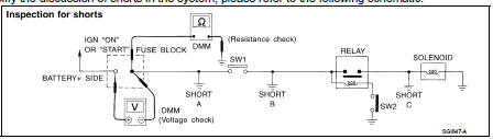 Resistance Check Method • Disconnect the battery negative cable and remove the blown fuse.