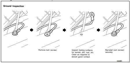 • When inspecting a ground connection follow these rules: - Remove the ground bolt or screw.