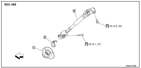 • For intermediate shaft mounting bolt direction, refer to ST-13, "Exploded