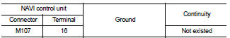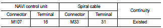 2. Check continuity between NAVI control unit harness connector and spiral cable harness connector.