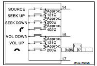 2. Check steering switch. Refer to AV-74, "Component Inspection".