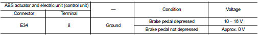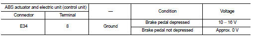 3. Check voltage between ABS actuator and electric unit (control unit) harness connector and ground.