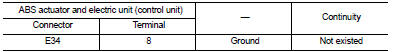 4. Check continuity between ABS actuator and electric unit (control unit) harness connector and ground.