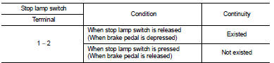 3. Check continuity when stop lamp switch is operated.