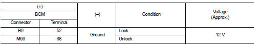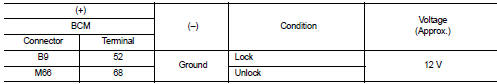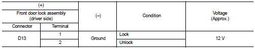3. Check voltage between front door lock assembly (driver side) harness connector and ground.