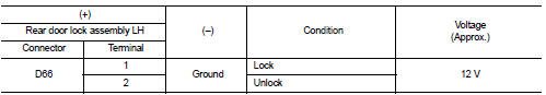 3. Check voltage between rear door lock assembly LH harness connector and ground.