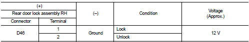 3. Check voltage between rear door lock assembly RH harness connector and ground.