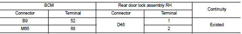 2. Check continuity between BCM harness connector and rear door lock assembly RH harness connector.
