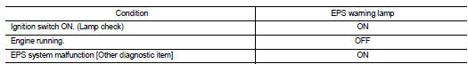 • If any malfunction occurs in the system, and control unit detects the malfunction, EPS warning lamp on combination meter turns ON to indicate system malfunction.