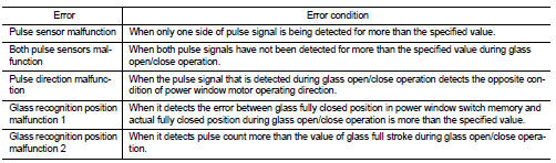 • Resistance is applied to the front power window motor (driver side) rotation that changes the frequency of encoder pulse signal if foreign material is trapped in the door glass.