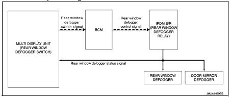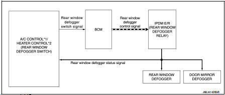 • BCM transmits the rear window defogger switch signal to IPDM E/R for