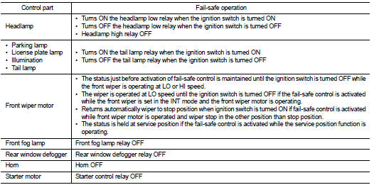 When CAN communication with ECM and BCM is impossible, IPDM E/R performs fail-safe control. After CAN communication recovers normally, it also returns to normal control.